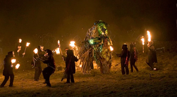 Med en stor festival där man tänder eldar, leker lekar och äter en fruktkaka som innehåller mynt och andra saker som påstås föra tur med sig.