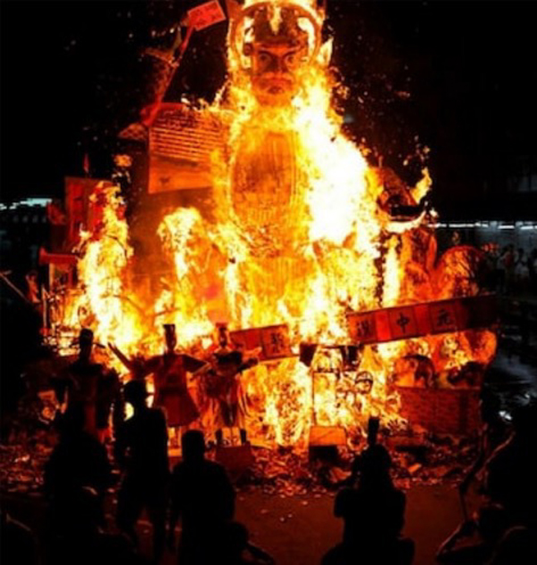 "Festival of the Hungry Ghosts" går av stapeln varje år och då bränns bilder på frukt och pengar för att de döda ska ha något att äta och köpa saker för.